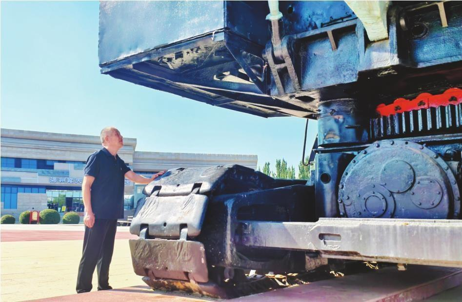 老礦工馬玉民駐足海州露天礦國(guó)家礦山公園中央的電鎬下,回憶起當(dāng)年工作的情形。
