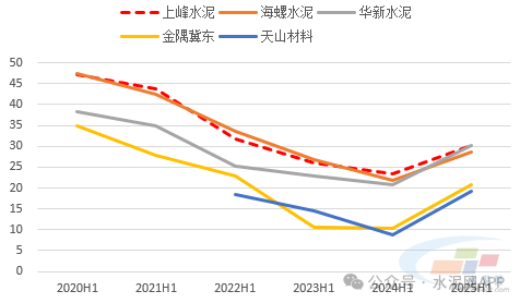 盡管水泥熟料綜合銷量出現(xiàn)下降,但得益于煤炭采購(gòu)價(jià)格下跌和精細(xì)化管理促使可控成本下降,2025年上半年公司水泥熟料綜合毛利率達(dá)到30.1%,較去年同期提升6.7個(gè)百分點(diǎn),絕對(duì)毛利率水平略微低于華新水泥(主要海外帶動(dòng)),超過(guò)國(guó)內(nèi)多數(shù)主要上市公司,在行業(yè)中處于領(lǐng)先地位,水泥產(chǎn)品盈利能力較強(qiáng)。