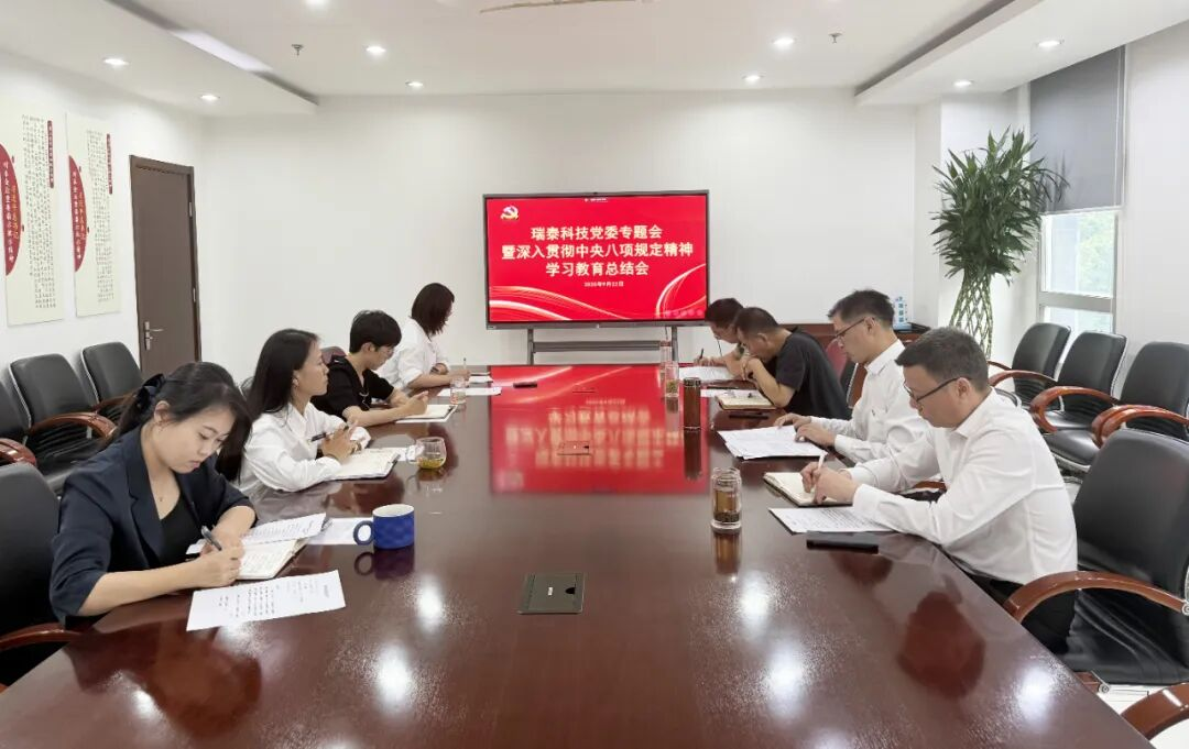 9月22日,瑞泰科技召開黨委專題會暨深入貫徹中央八項規(guī)定精神學習教育總結會。瑞泰科技黨委書記、董事長陳榮建主持會議并講話,公司黨委委員、紀委書記童若思報告公司深入貫徹中央八項規(guī)定精神學習教育總體情況,公司領導班子成員結合分管領域作交流發(fā)言。