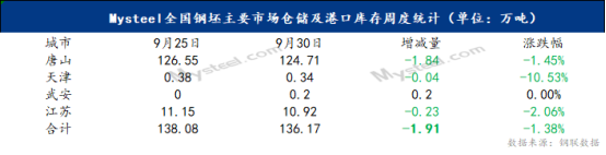 表一: Mysteel全國(guó)鋼坯主要市場(chǎng)倉(cāng)儲(chǔ)及港口庫(kù)存周度統(tǒng)計(jì)