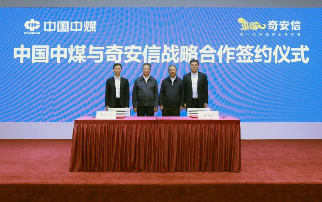 10月9日,中國中煤與奇安信集團在京簽署戰(zhàn)略合作協(xié)議。中國中煤黨委書記、董事長王樹東與奇安信集團黨委書記、董事長齊向東舉行工作會談并見證簽約。中國中煤黨委常委、副總經(jīng)理倪嘉宇,奇安信集團高級副總裁吳登峰分別代表雙方簽署協(xié)議。奇安信集團副總裁唐皓參加活動。