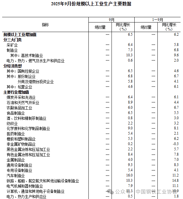10月20日,國(guó)家統(tǒng)計(jì)局發(fā)布的數(shù)據(jù)顯示,2025年9月份,我國(guó)粗鋼產(chǎn)量7349萬噸,同比下降4.6%;生鐵產(chǎn)量6605萬噸,同比下降2.4%;鋼材產(chǎn)量12421萬噸,同比增長(zhǎng)5.1%。