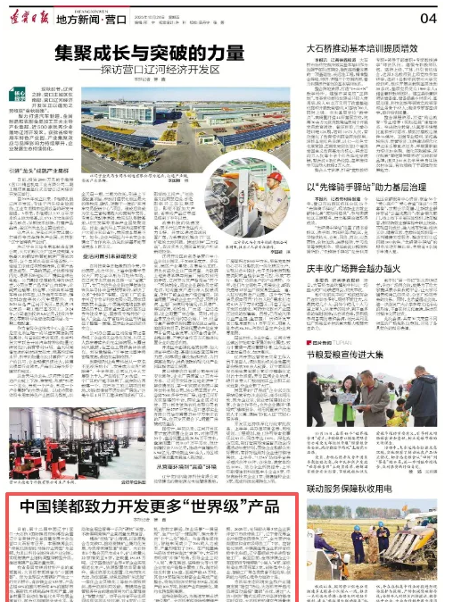 堅持創(chuàng)新驅動,為高速發(fā)展點燃“新引擎”。大石橋市積極推動菱鎂產業(yè)延鏈補鏈發(fā)展,向鎂化工、鎂建材、鎂合金產業(yè)發(fā)力,開發(fā)更多“世界級”菱鎂產品。2025年,大石橋市謀立推建涉鎂工業(yè)項目32個,總投資12.8億元。綠色發(fā)展與智能化轉型同頻共振。2025年,光陽耐火等3家企業(yè)獲評營口市級綠色工廠,遼寧青花等企業(yè)沖刺國家級綠色工廠,全市累計培育國家和省市級綠色工廠7家。在智能化領域,中鎂高溫等企業(yè)獲評省級數(shù)字化車間,遼寧嘉順成為先進級智能工廠。截至目前,全市涉鎂企業(yè)中有國家級專精特新“小巨人”4家、省級制造業(yè)單項冠軍3家,創(chuàng)新型中小企業(yè)、智能工廠等各類榮譽不勝枚舉,創(chuàng)新能力與核心競爭力后勁十足。