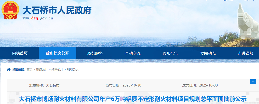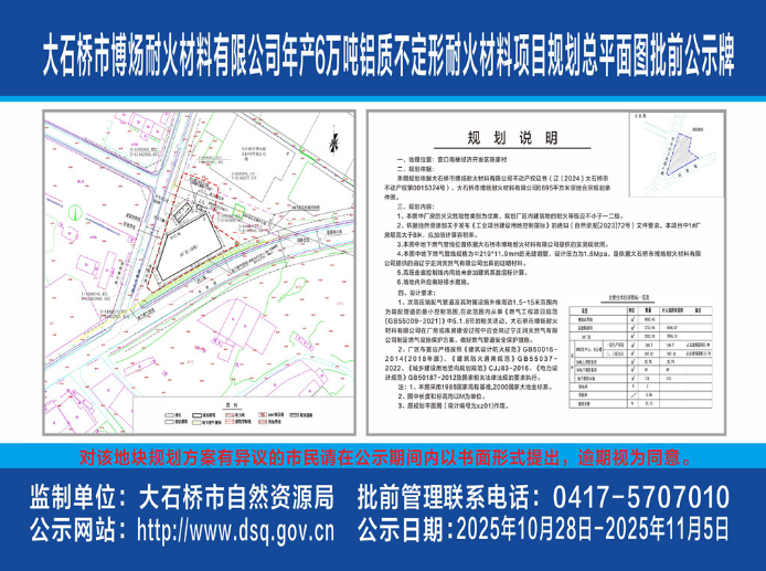 大石橋市博煬耐火材料有限公司年產6萬噸鋁質不定形耐火材料項目規(guī)劃總平面圖批前公示 ?