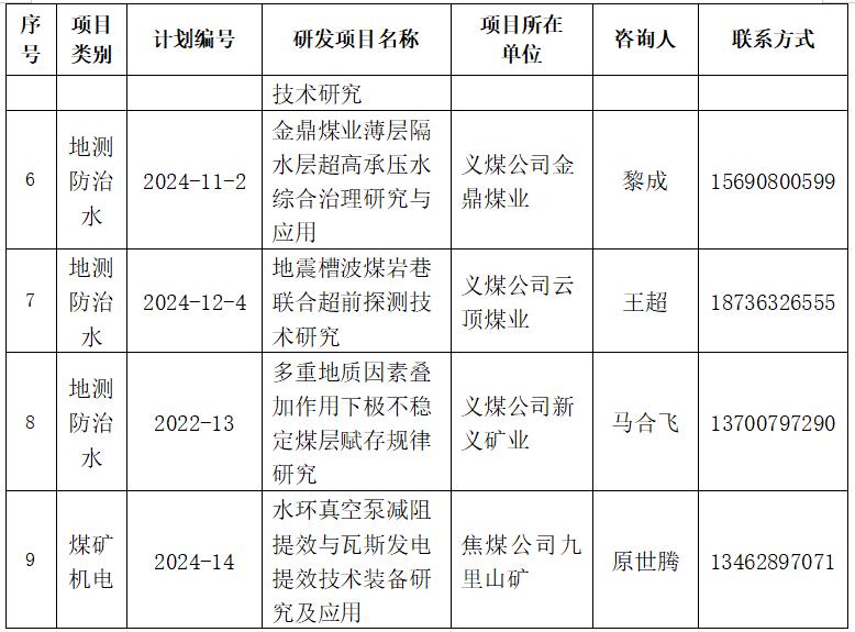 河南能源集團(tuán)2024年“揭榜掛帥”研發(fā)項(xiàng)目榜單公告(第四批)
